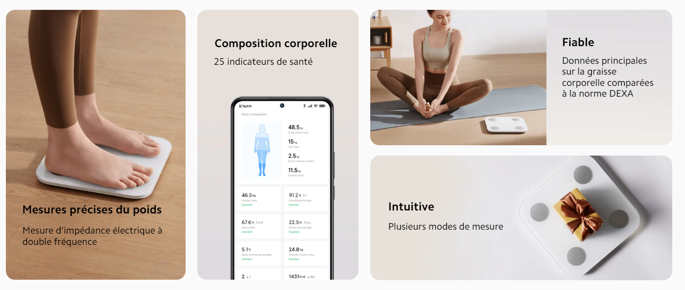 • Xiaomi Body Composition Scale S400 propose différentes méthodes de mesure.